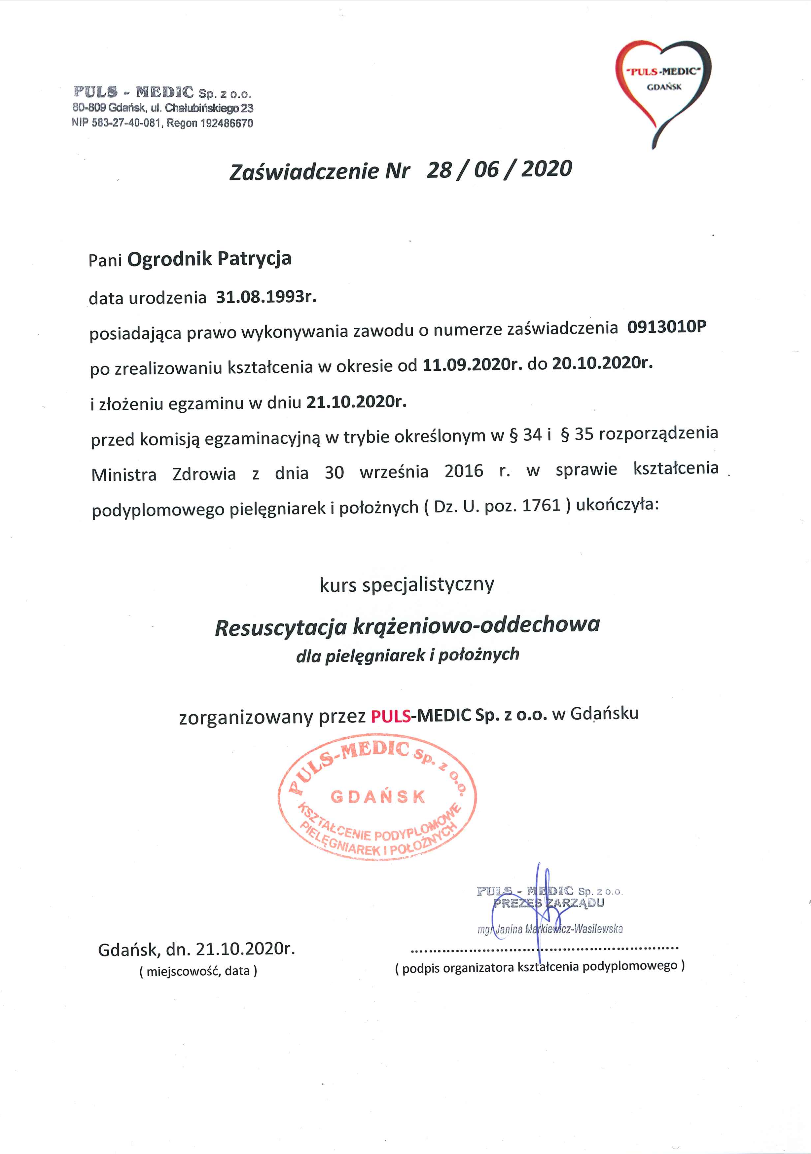 Nazywam się Patrycja Ogrodnik i jestem założycielką Patty-Med. Jako wykwalifikowana specjalistka z wieloletnim doświadczeniem w medycynie, oferuję profesjonalne usługi z zakresu kroplówek medycznych i wlewów witaminowych. Moim celem jest poprawa zdrowia i jakości życia moich pacjentów.